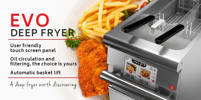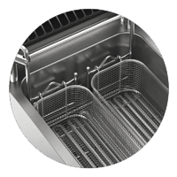 The automatic filtering system offers quick and easy oil cleaning by providing user-friendly instructions on the large display. The oil’s closed circuit ensures that hot oil will be handled in complete safety.