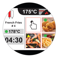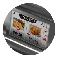 By programming the recipes on the touch screen panel, the basket is automatically raised when the set frying time has expired.