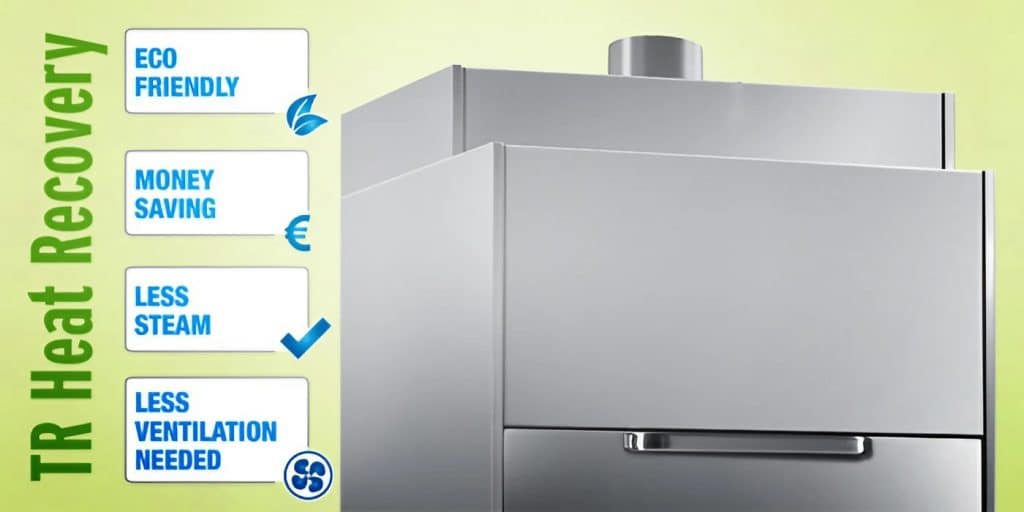 The TR system is an heat exchanger: the moist warm water vapour is drawn directly out of the machine when the door is closed, and used for pre-heating the cold water supplied up to around 50°C.