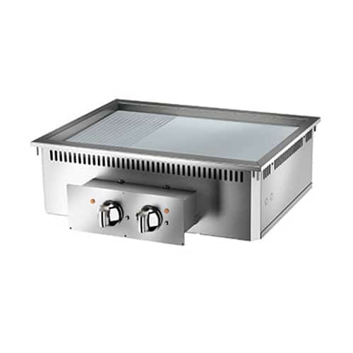 2 Burner Drop In Electric Fry Top With 2/3 Smooth 1/3 Ribbed Chrome Plate And Thermostat Control
