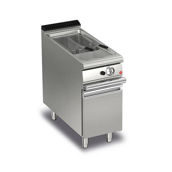 15L single basin gas deep fryer with piezo ignition. Automatic temperature adjustment thermostat up to 190°C. Fire proof safety thermostat (230°C). Oil drain valves. Knobs with IPX5 water jet ingress protection rating. AISI304 stainless steel construction. Complete with two baskets and lid. Total gas load - 50 Mj.Dimensions: