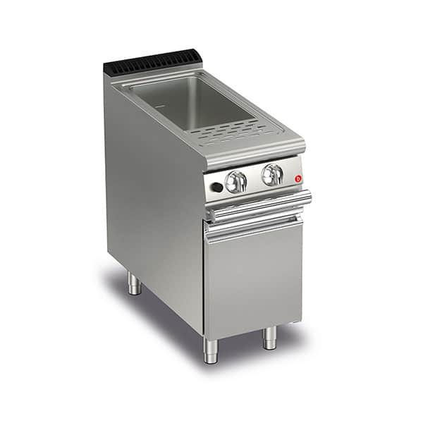 26L single basin gas pasta cooker. AISI316 marine grade stainless steel cooking tank. Safety pressure switch in tub to avoid dry functioning. Complete with water tap and spout, overflow with drain and flame failure device. Knobs with IPX5 water jet ingress protection rating. AISI304 stainless steel construction. Total gas load - 50 Mj.Dimensions:
