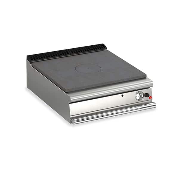 Gas, bench model target top. High power central burner with piezo electric ignition. Cast iron brushed griddle with removable central disc. Knobs with IPX5 water jet ingress protection rating. AISI304 stainless steel construction. Total gas load - 43 Mj.