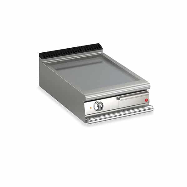 One burner, bench model electric fry top with smooth mild steel plate. Thermostat control. Knobs with IPX5 water jet ingress protection rating. AISI304 stainless steel construction. Total power - 3 phase, 10.5kW.Dimensions: