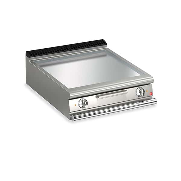 Two burner, bench model electric fry top with smooth chrome plate. Thermostat control. Knobs with IPX5 water jet ingress protection rating. AISI304 stainless steel construction. Total power - 3 phase, 15kW.Dimensions: