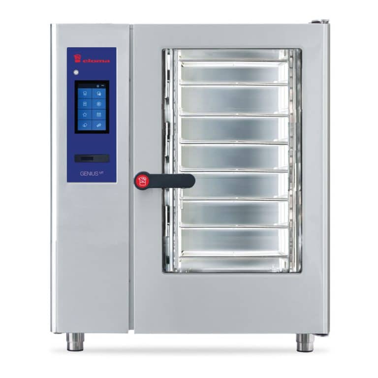 GENIUS MT 10-11 Series electric live steam combi oven with right-hand hinged door. 10 x 1/1 GN capacity with 7-inch MultiTouch Display control panel. Complete with core temperature probe, inbuilt automatic washing system, 10-speed fan, triple glazed door with LED lighting, HACCP data logging, and a 5-micron water filter. Temperature range 30°C - 300°C. 3 phase, 17kW power supply.Dimensions:
