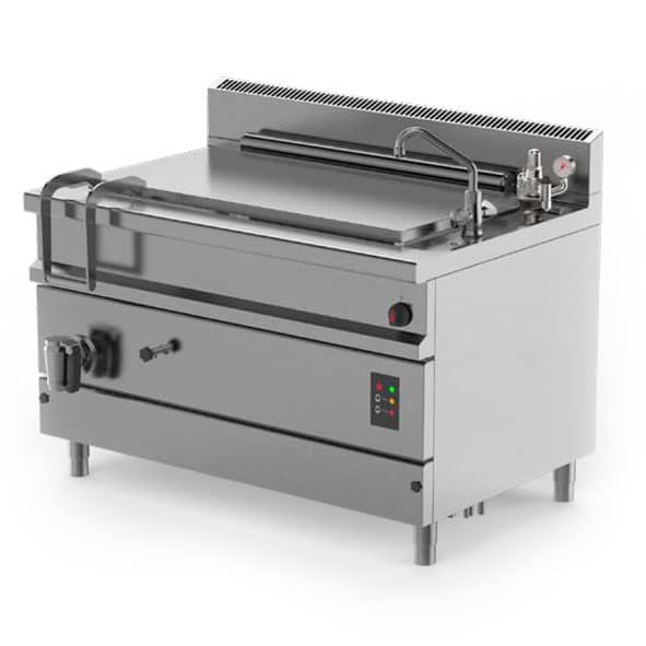 EASYPAN series medium to large capacity fixed gastronorm pans with indirect electric heating. Stainless steel construction with marine grade AISI 316 cooking vat, electromechanical controls and capacities ranging from 170 to 370 litres. Ideal for boiling large quantities of food. Double jacket water level control system as standard.