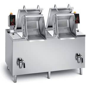 EASYBASKETT series medium to large capacity jacketed tilting boiling pans with indirect steam heating, preventing products from sticking to the bottom and walls of the container during cooking. Stainless steel construction, motorised tilting and capacities ranging from 100 to 500 litres, these functional boiling pans are ideal for cooking large quantities of food, even foods …