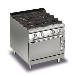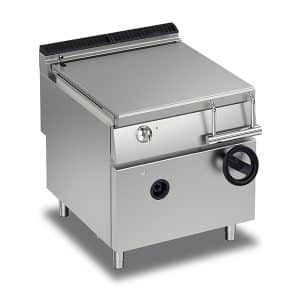 EASYBRATT series medium to large capacity bratt pans with direct gas heating and motorised tilting function suitable for braising foods with capacities ranging from 80 to 200 litres. Electromechanical controls with safety flame failure device for burners, water fill tap and counter balanced lid.
