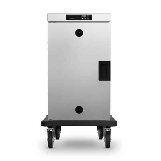 Slim line mobile heated cabinet.